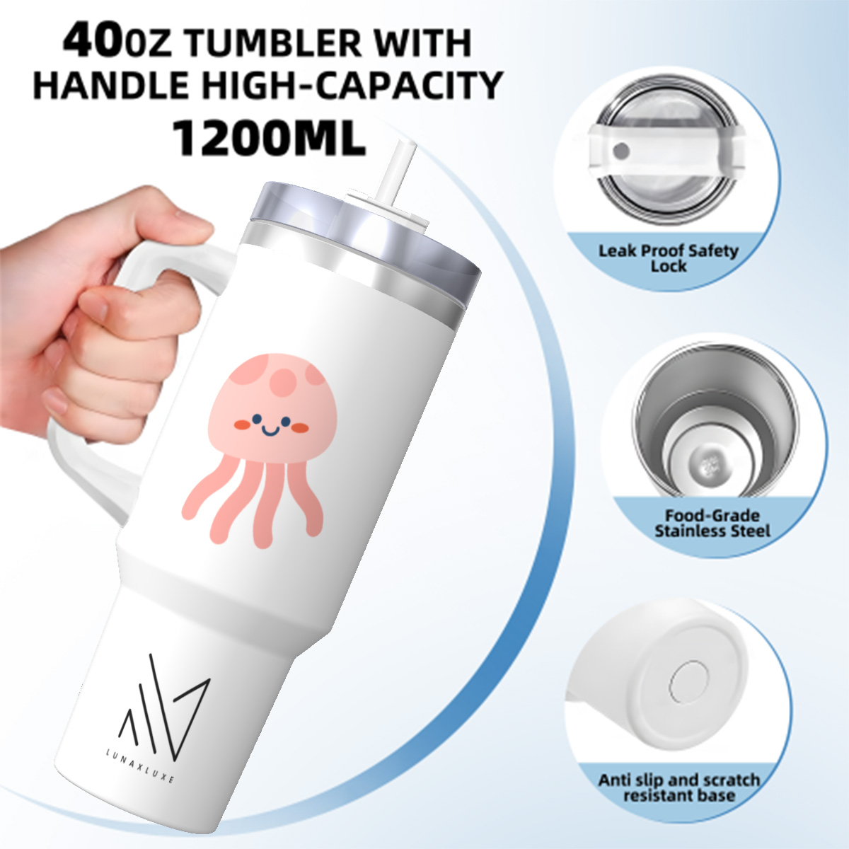 The Cute Jellyfish 40oz Tumbler combines fun design with practical features, making it the perfect addition to your drinkware collection or a delightful gift for ocean enthusiasts!