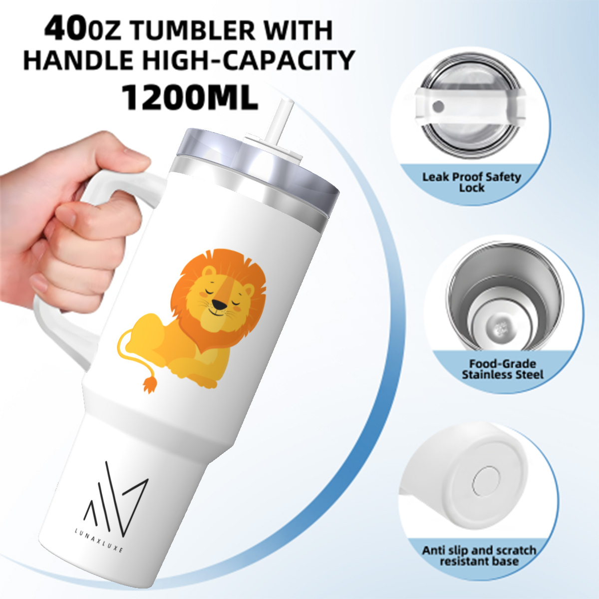 With its Cute Lion design, this 40oz tumbler combines charm and practicality, making it the perfect accessory for anyone who wants to stay hydrated in style!