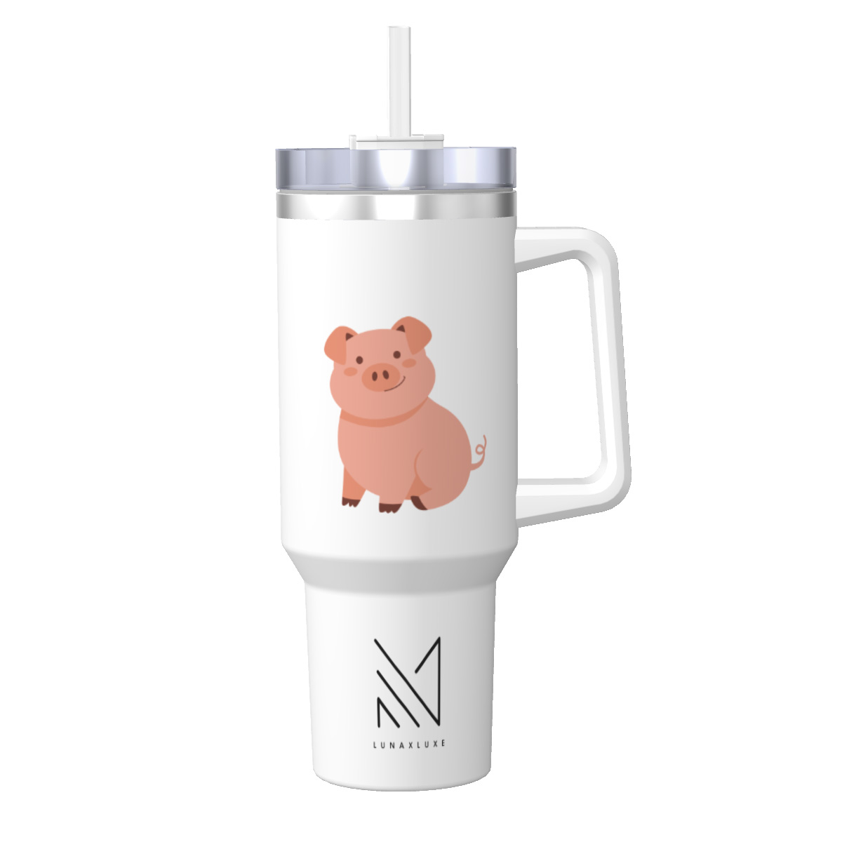 Add a touch of whimsy to your hydration routine with our Cute Pig 40oz Tumbler! Featuring an adorable pig design, this stainless steel tumbler is perfect for animal lovers and anyone who enjoys a fun twist on their drinkware. With its generous capacity, comfortable handle, and insulated design, this tumbler is the ideal companion for all your adventures, from work to play.